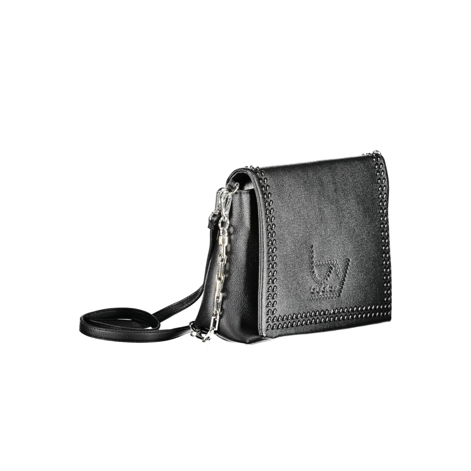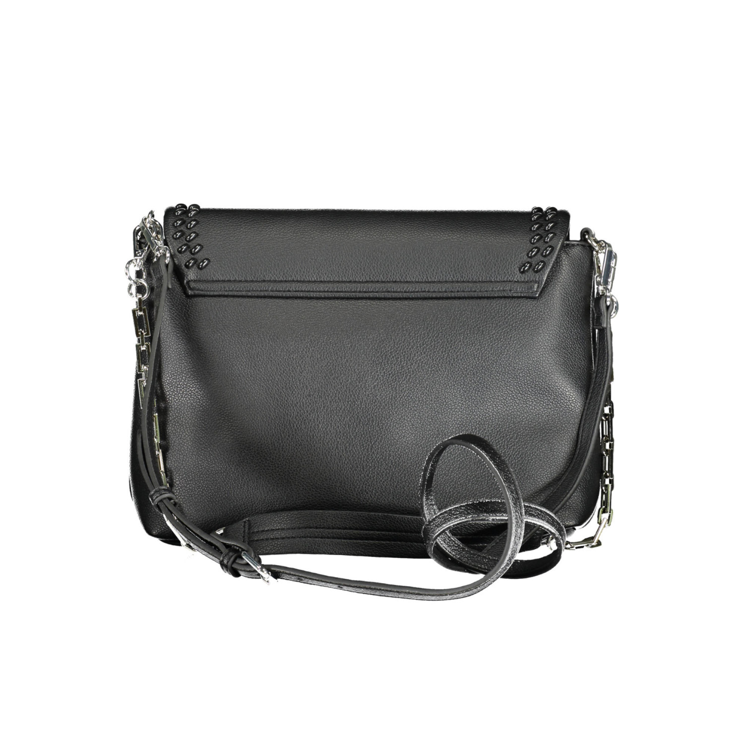 borsa 1 manico a spalla in catena removibile, tracolla regolabile e removibile, 1 tasca interna, spazi interni portadocumenti, dettagli a contrasto, chiusura con automatico, logo