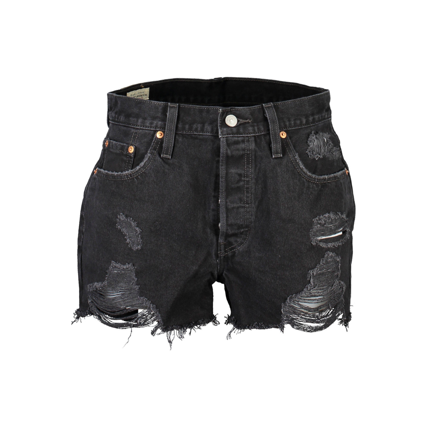 short 501, 5 tasche, bottoni, effetto usurato, logo