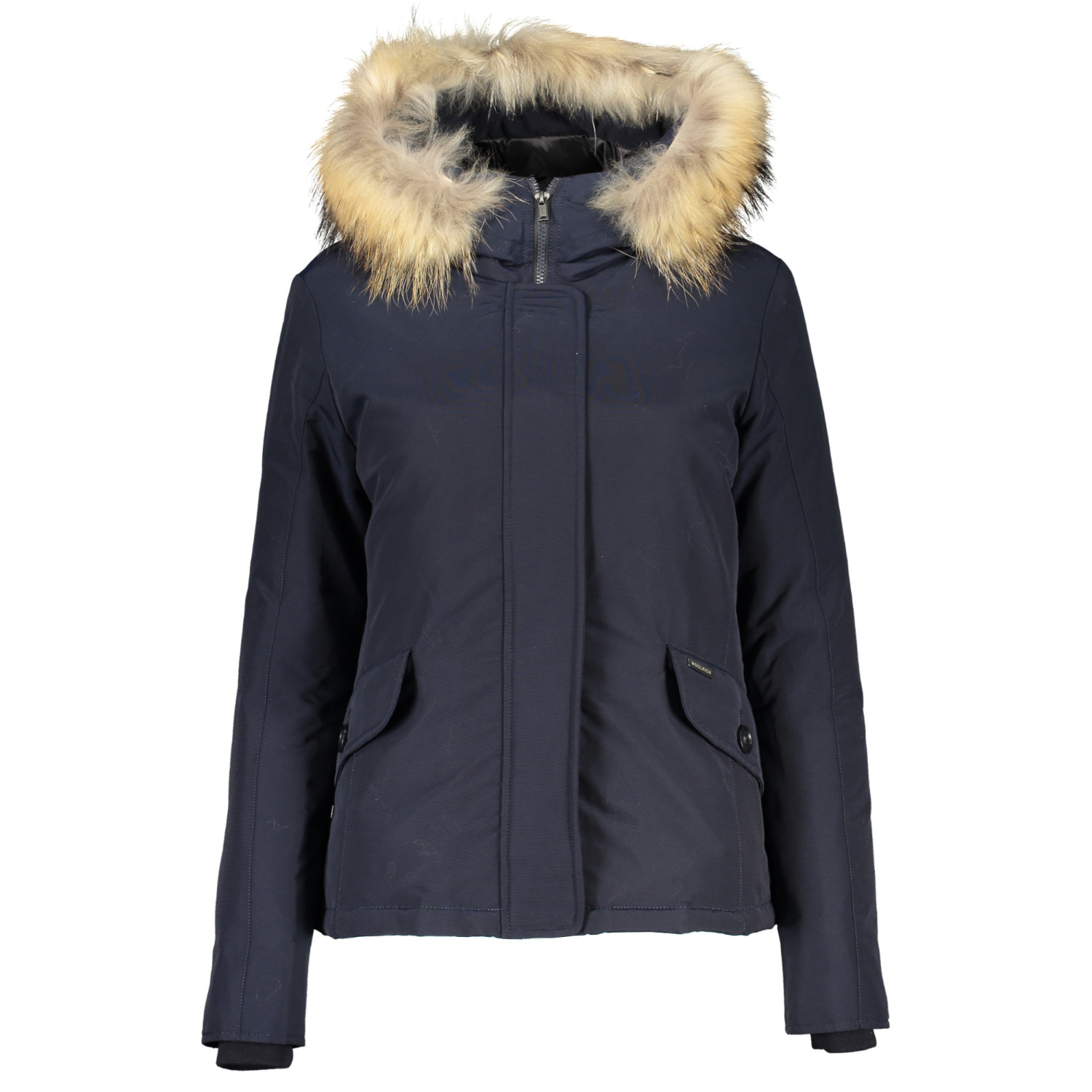 GIUBBOTTO MANICHE LUNGHE CON CAPPUCCIO CON PELO REMOVIBILE, 2 TASCHE, ZIP E BOTTONI, LOGO