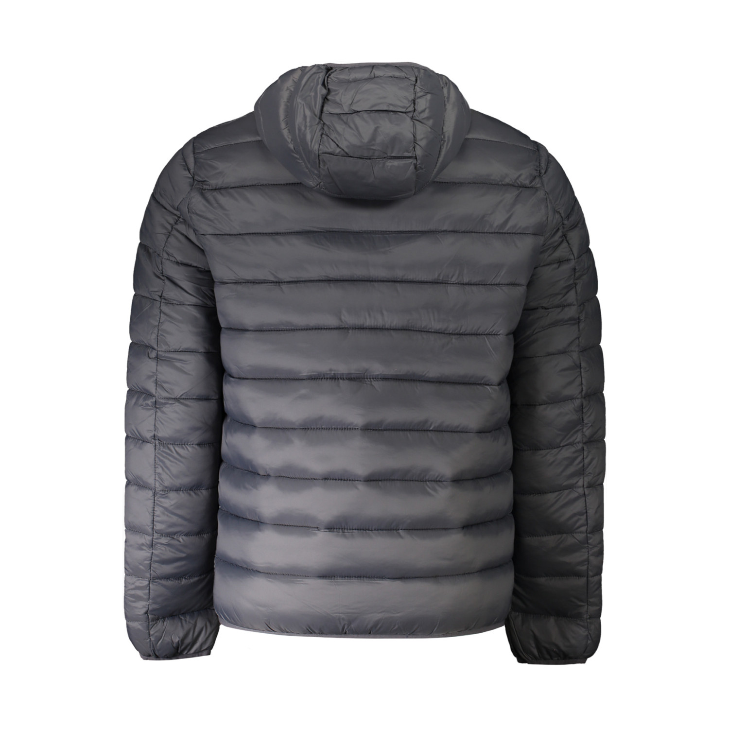 GIUBBOTTO MANICHE LUNGHE CON CAPPUCCIO, 2 TASCHE ESTERNE, DETTAGLI A CONTRASTO IN GRIGIO, ZIP, APPLICAZIONE, LOGO