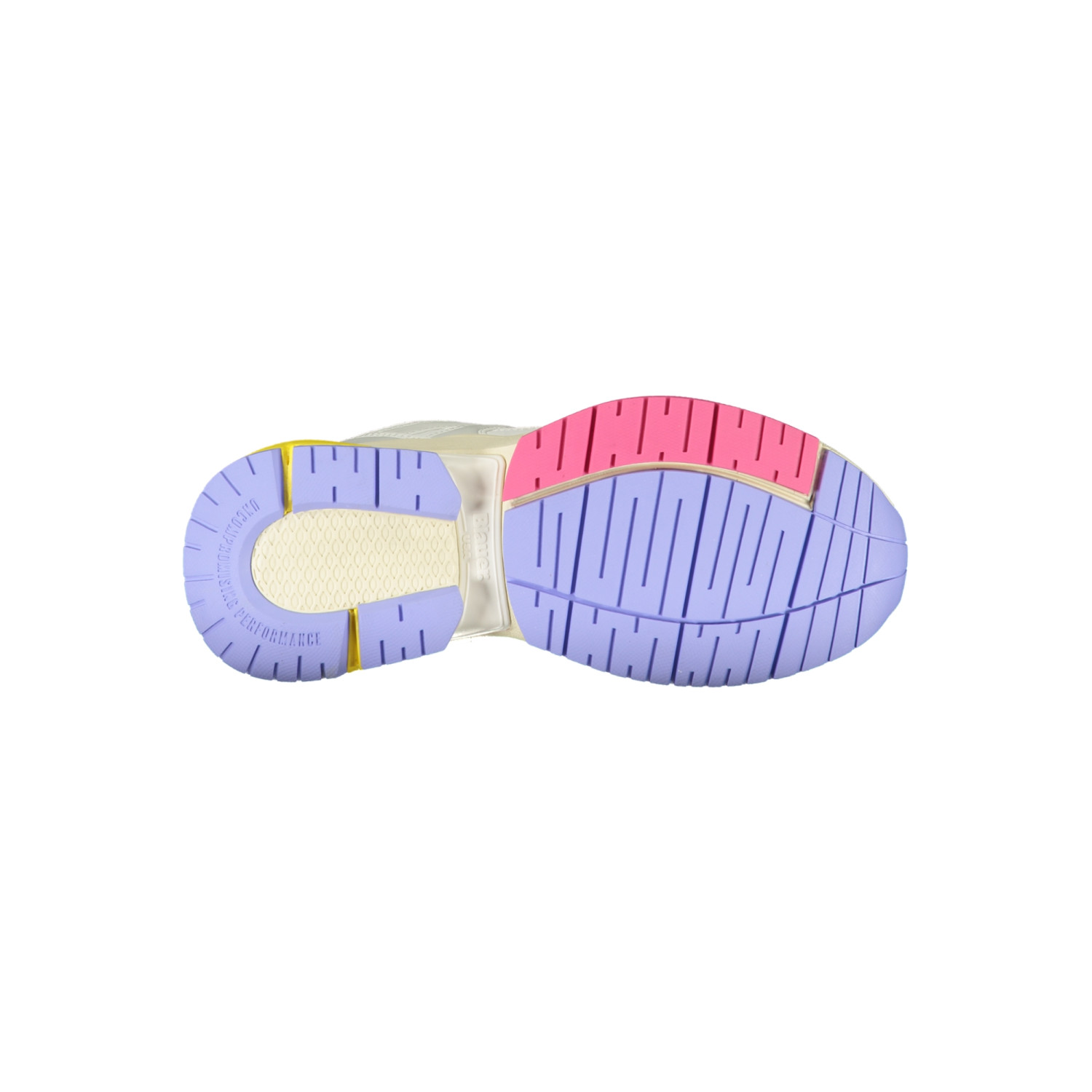 CALZATURA SPORTIVA CON LACCI, DETTAGLI A CONTRASTO IN VIOLA/ROSA/GIALLO, PLANTARE REMOVIBILE, STAMPA, LOGO