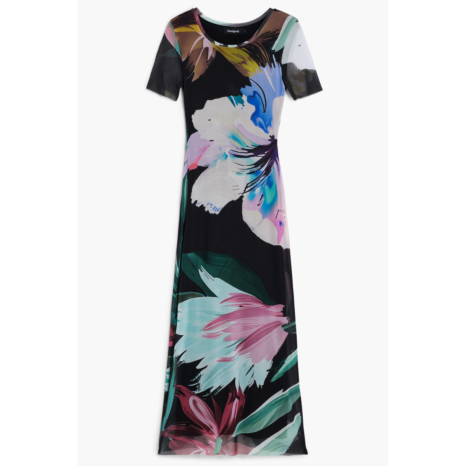 ABITO LUNGO FANTASIA, MANICHE CORTE, BERNADETTE, GIROCOLLO, LOGO