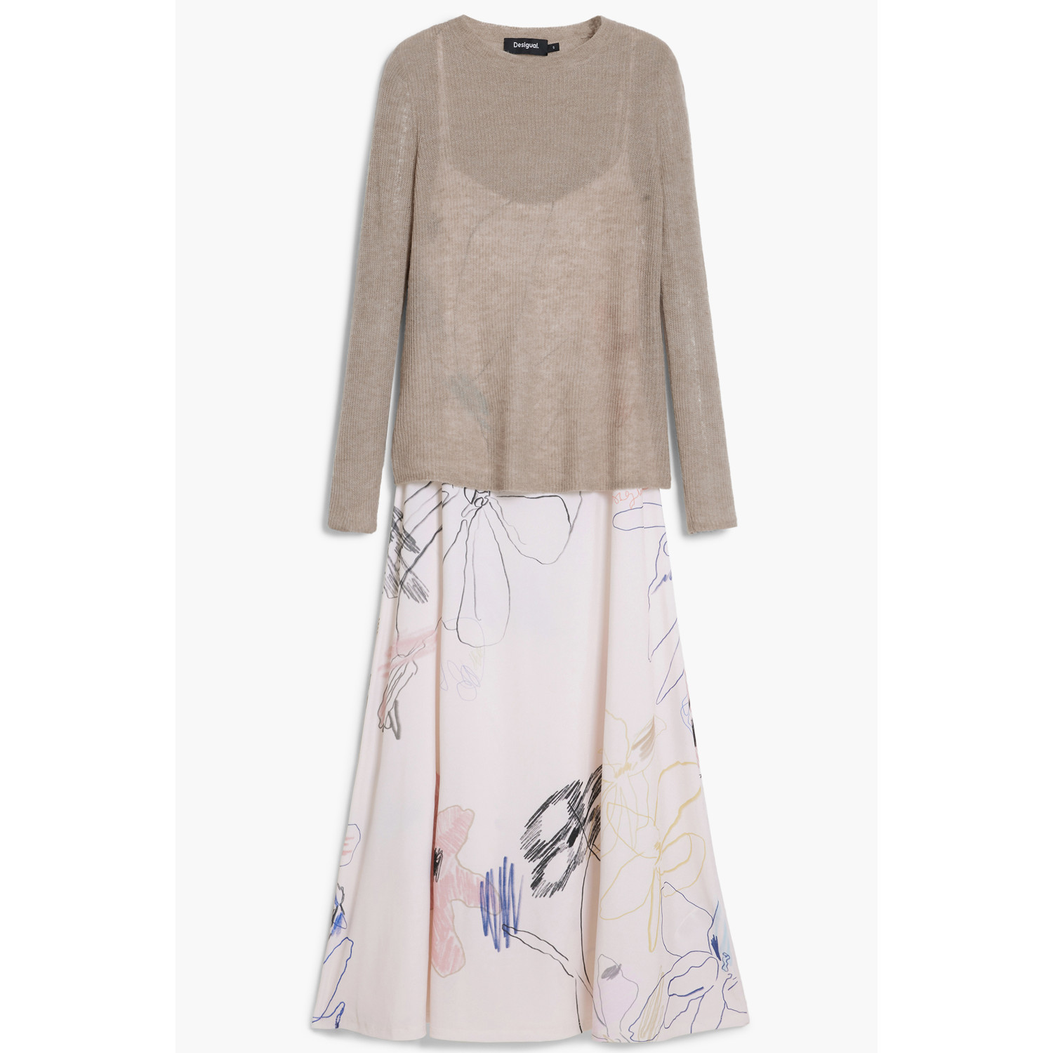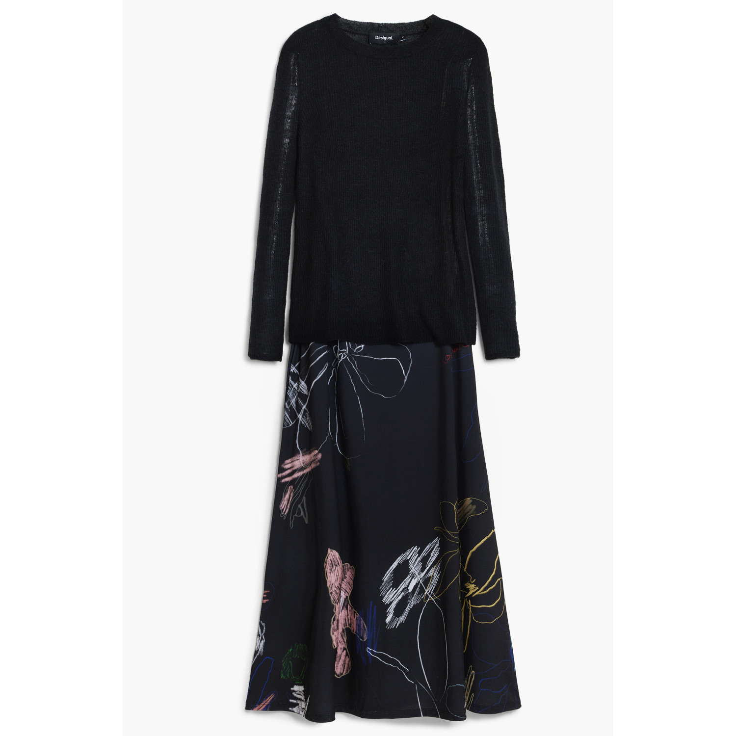 ABITO LUNGO CON SCALDA CUORE SEPARABILI, KALA, ABITO CON SPALLINE SOTTILI REGOLABILI, SCALDA CUORE MANICHE LUNGHE, GIROCOLLO, DETTAGLI A CONTRASTO, LOGO