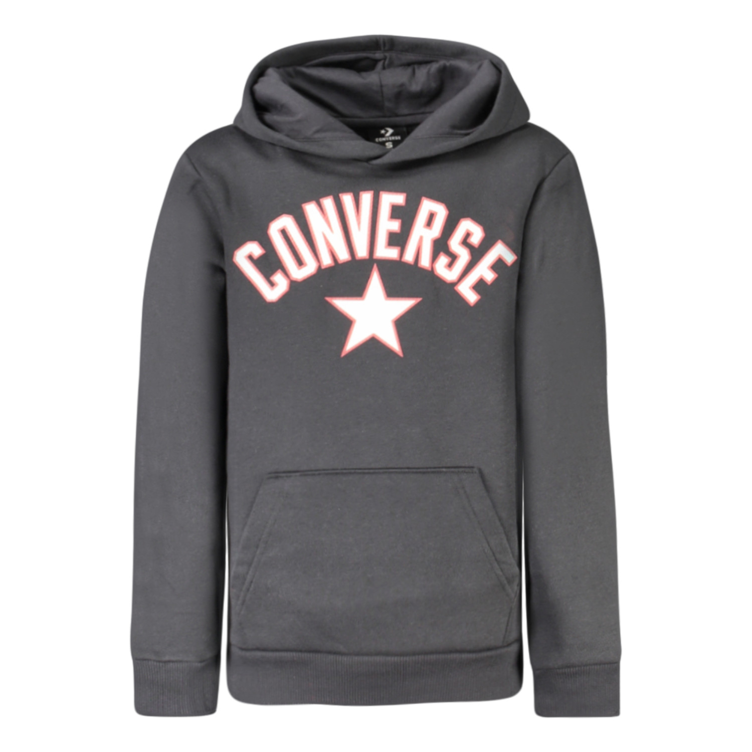 FELPA MANICHE LUNGHE CON CAPPUCCIO, FELPATA, 1 TASCONE CENTRALE, STAMPA, LOGO