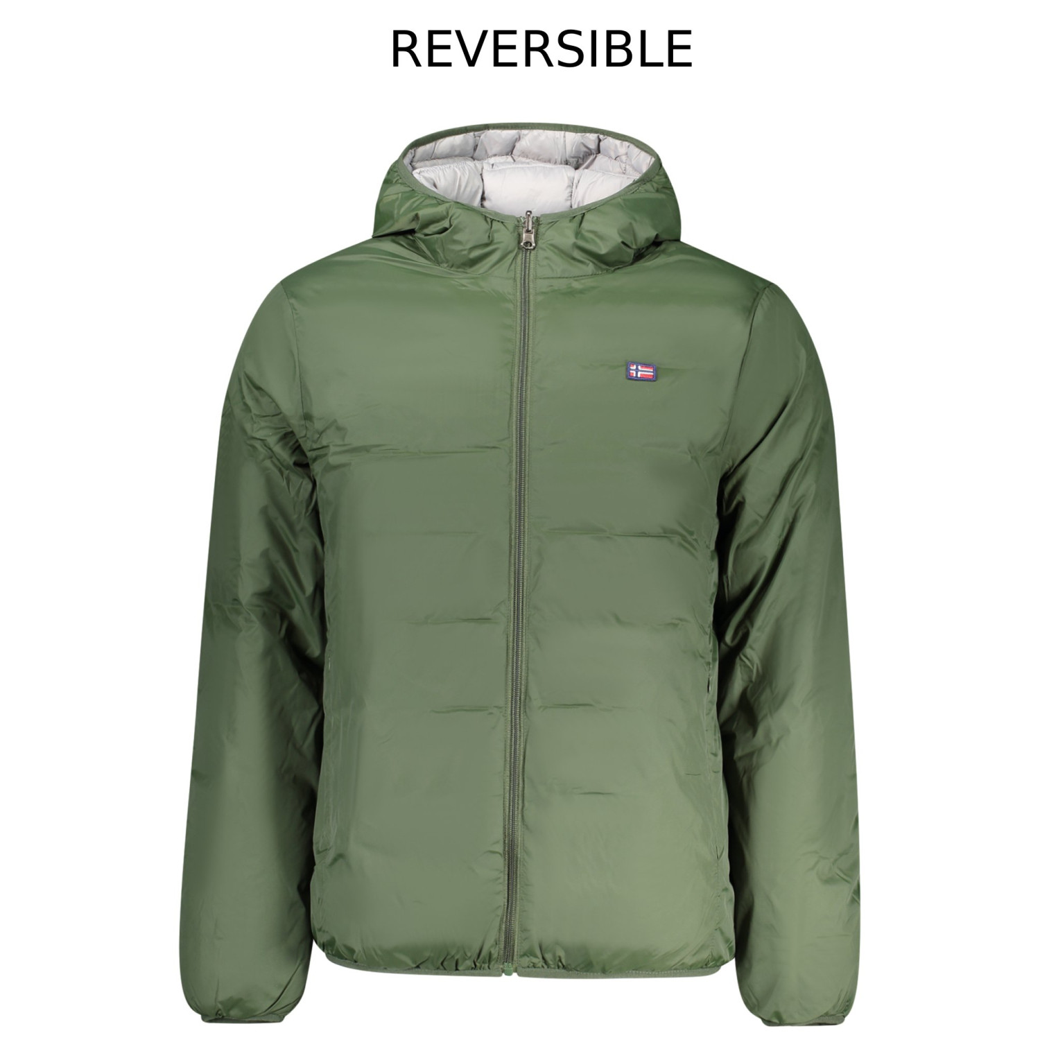 GIUBBOTTO MANICHE LUNGHE CON CAPPUCCIO, REVERSIBILE, 2 TASCHE ESTERNE, APPLICAZIONE, LOGO