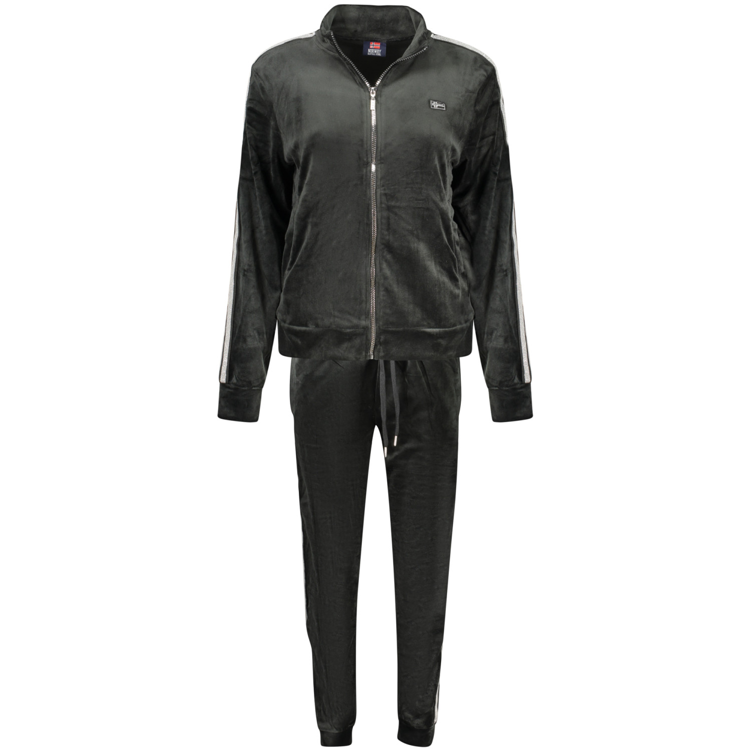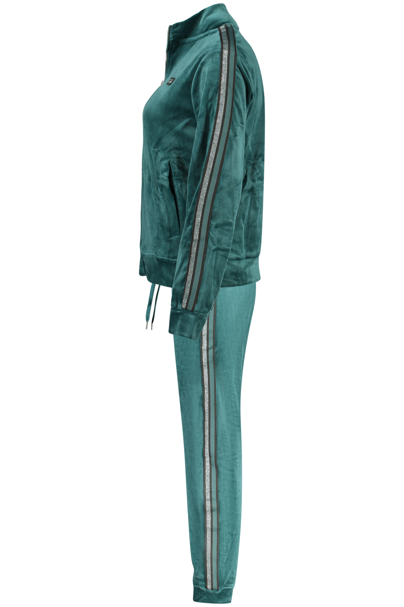 TUTA SPORTIVA, FELPA MANICHE LUNGHE, 2 TASCHE, FULL ZIP, PANTALONE, ELASTICO IN VITA CON LACCI, 2 TASCHE, POLSINO ALLA CAVIGLIA, DETTAGLI A CONTRASTO, APPLICAZIONE, LOGO