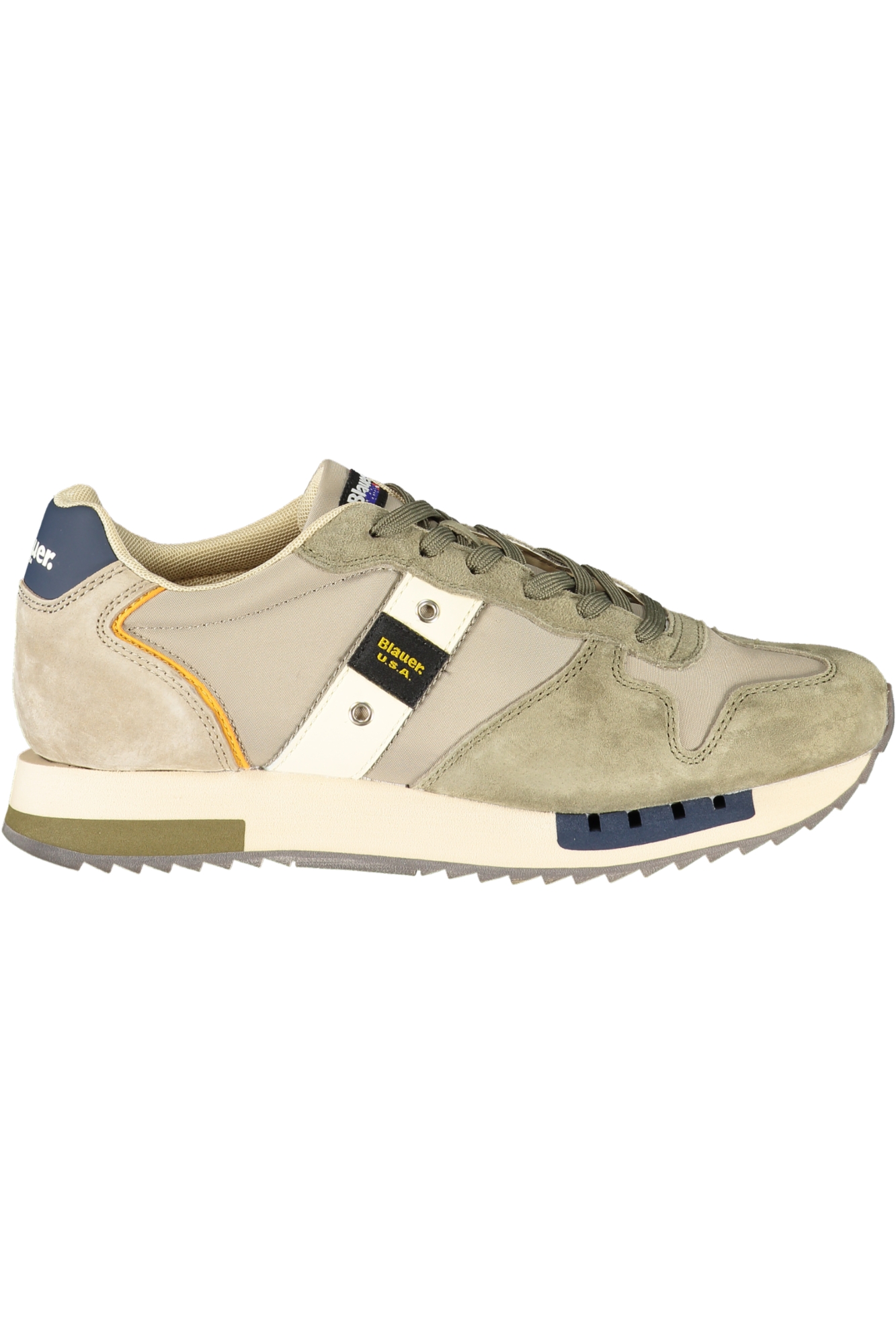 CALZATURA SPORTIVA CON LACCI, DETTAGLI A CONTRASTO IN BLU/BEIGE, PLANTARE REMOVIBILE, APPLICAZIONE, LOGO